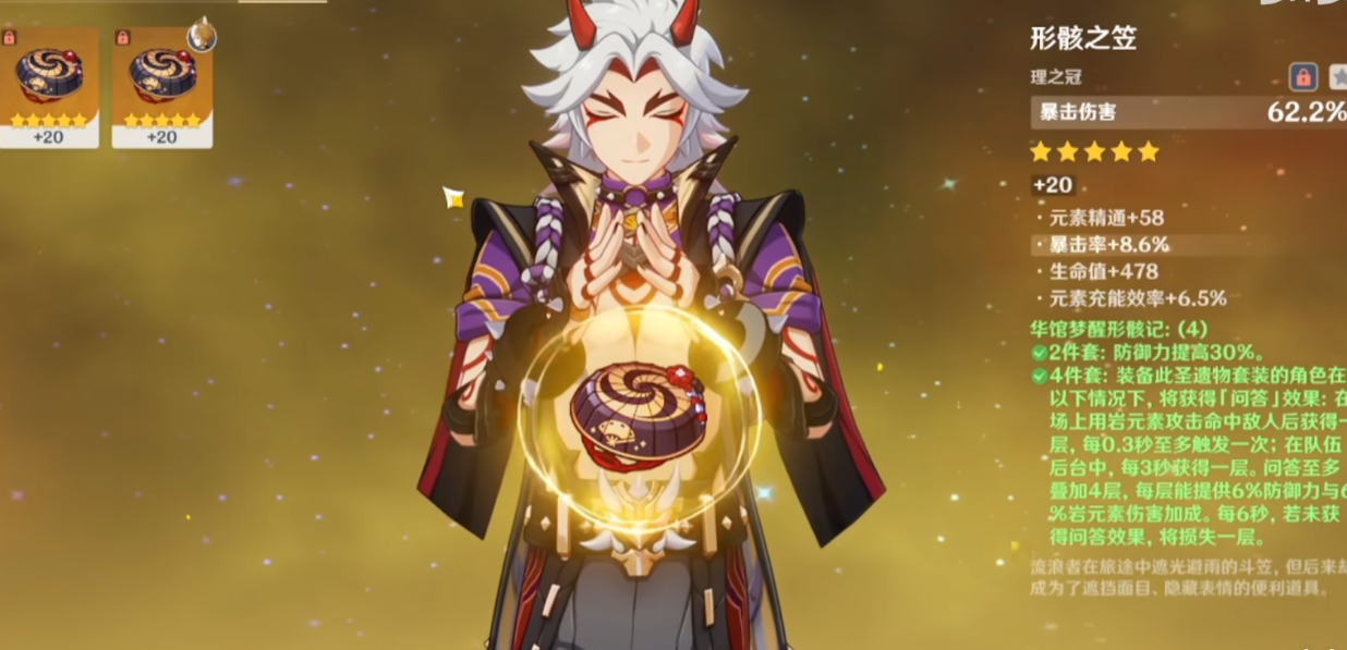 荒泷一斗作为岩系主C角色,其圣遗物搭配的核心思路是最大化防御力转化输出的效率,同时兼顾暴击与岩元素伤害加成。首选圣遗物套装为华馆梦醒形骸记四件套,两件套提供30%防御力加成,四件套通过叠加问答效果进一步提升防御力和岩元素伤害,最高可叠加24%防御力与24%岩伤加成。该套装与一斗的技能机制高度契合,尤其在开启元素爆发后,防御力转化的攻击力收益会显著提升整体输出能力。