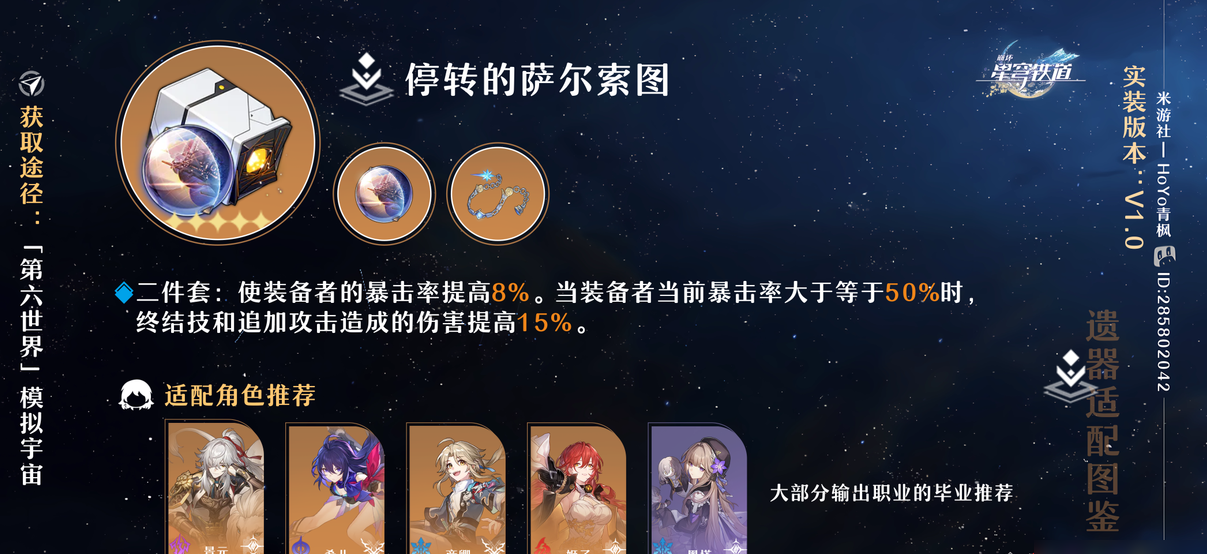 遗器套装选择需结合角色定位与战斗需求,通用规则是输出角色优先考虑暴击率或暴击伤害加成的套装,如恶海逐波的船长四件套能提升暴击伤害和暴击率,并在暴击率达标时增强普攻与战技伤害;生存型或生命依赖角色则适合宝命长存的莳者或谧宁拾骨地等套装,这些能提高生命上限并提供暴击率或暴击伤害增益。套装部位固定,玩家必须明确目标部位,如躯干、脚部、位面球或连接绳,每个部位有专属主词条,选择时需匹配角色技能机制。