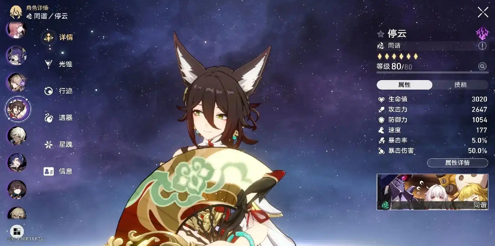 停云作为另一辅助角色,在配队中常与布洛妮娅协同出现,例如在布洛妮娅+景元+停云+白露的组合中,停云的大招能为团队提供额外增益,如能量回复或控场辅助。 她的技能设计可能专注于雷属性或特定命途效果,与布洛妮娅的风属性增伤形成属性互补,确保队伍在面对不同敌人时更具适应性。 在高强度战斗中,停云的加入能缓解布洛妮娅的压力,例如通过大招解控或强化奶妈行动,提升容错率,这在忘却之庭或宇宙副本中尤为关键。