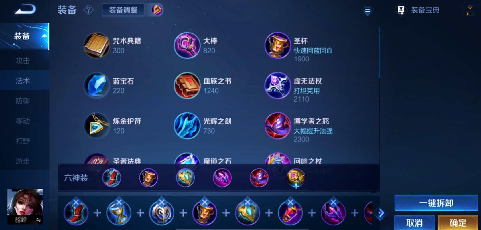 半肉型出装方案更适合应对高爆发敌方阵容,装备包括冷静之靴、噬神之书、痛苦面具、极寒风暴、博学者之怒和不死鸟之眼,肉装提供足够空间让貂蝉在阵前周旋;极寒风暴增加物理防御和冷却缩减,缓解技能衔接空隙,不死鸟之眼强化回复效果配合吸血书,提升持续续航,这套方案牺牲部分伤害换取生存,使貂蝉在持久战中更好地控制战场节奏,尤其在敌方多控制或高输出时表现更佳。