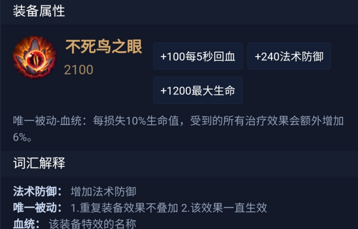 游戏进入中后期,鞋子可以考虑换成抵抗之靴提升韧性,如果对面法术伤害特别猛,早点出不死鸟之眼准这件装备的法术防御和被动回血增强,和大招简直是绝配,能极大提升残血反打能力。最后一件保命装很灵活,贤者的庇护提供第二条命,名刀·司命则能在丝血时救你一命,炽热支配者的护盾和解控有时也有奇效,根据战场形势选最需要的。如果走打野路线,起手装换成贪婪之握,它能加快清野速度并提供宝贵的冷却缩减,之后再补抵抗之靴和暗影战斧。