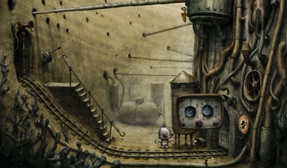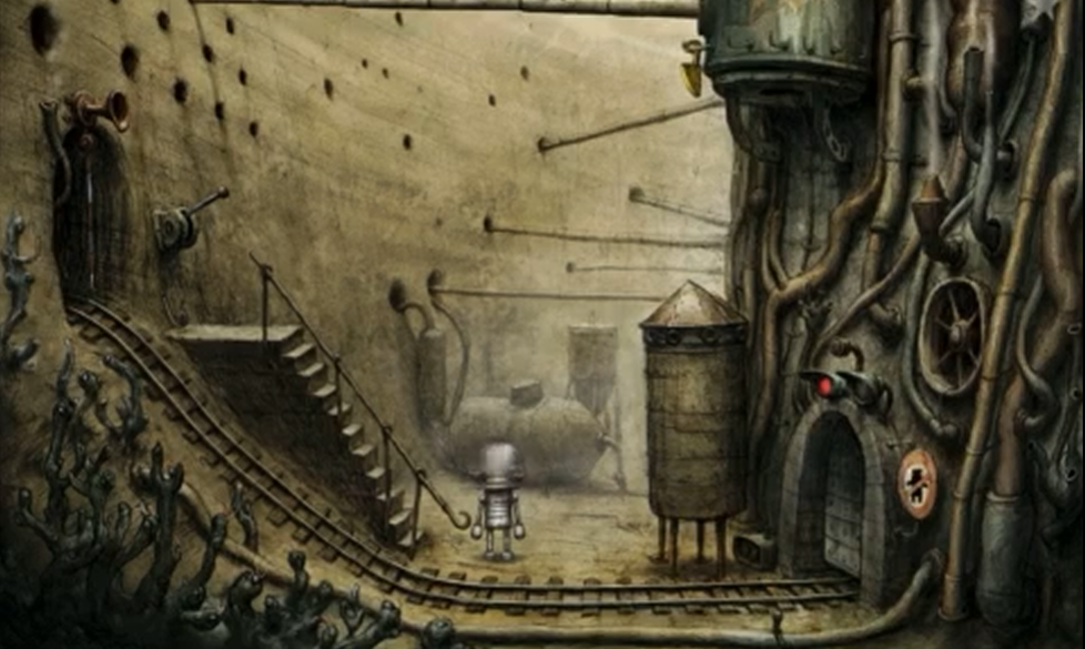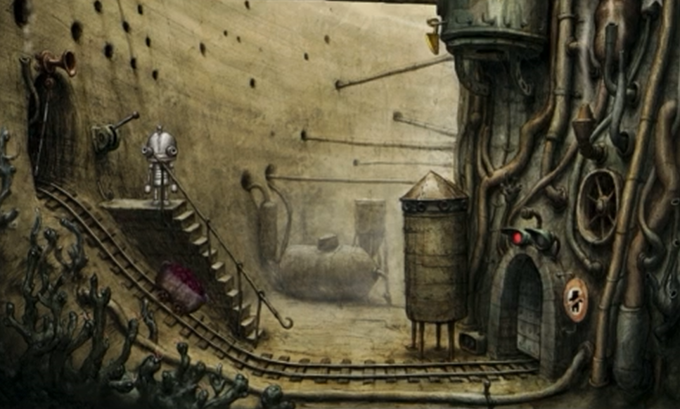 机械迷城第三关的核心谜题围绕调整仪器、获取道具与操控矿车展开。首先需要蹲下身体,点击右侧地面的仪器进行调试,将两个指针分别调整为2和A,随后按下仪器下方的红色按钮。这一操作会触发上方横杆移动,为后续攀爬创造条件。完成调整后需立即行动,因为仪器会在一段时间后复位。