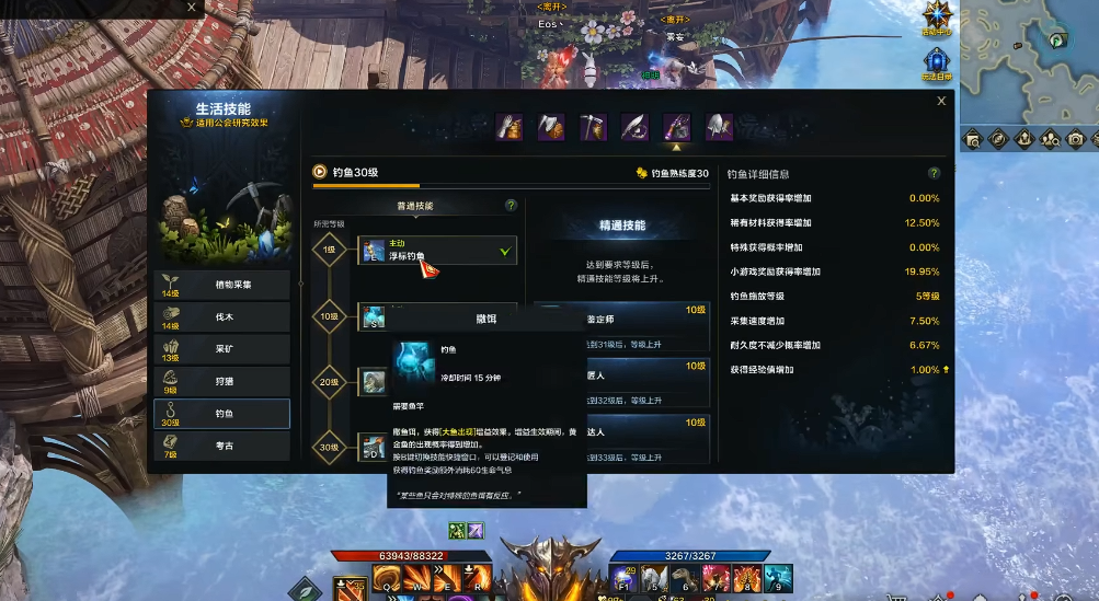 钓鱼工具的耐久度会随使用次数下降,需定期修理。修理材料可通过分解低阶钓具或完成航海协同任务获得。若追求效率,可优先选择减少耐久消耗的钓具词条。钓鱼技能的等级也会影响工具效果,按K键提升技能等级后,高阶钓具的性能才能完全发挥。