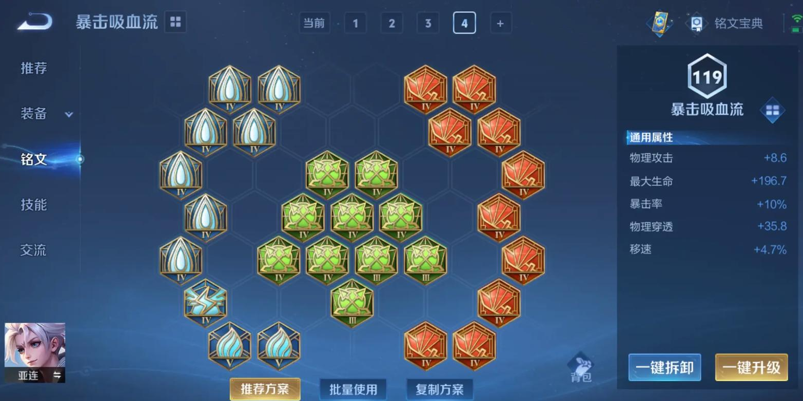 铭文推荐10个祸源堆高暴击率,10个鹰眼增加穿透保证伤害打得动前排,蓝色铭文选择5个狩猎加移速和攻速,再配合5个夺萃提供一点点吸血续航。这样前期对线清兵打野都舒服不少,技能衔接也更流畅。小伙伴的出装不是一成不变的,核心装影刃和无尽战刃是基石,其他装备得看对面阵容灵活调整,是偏重生存还是极限输出。