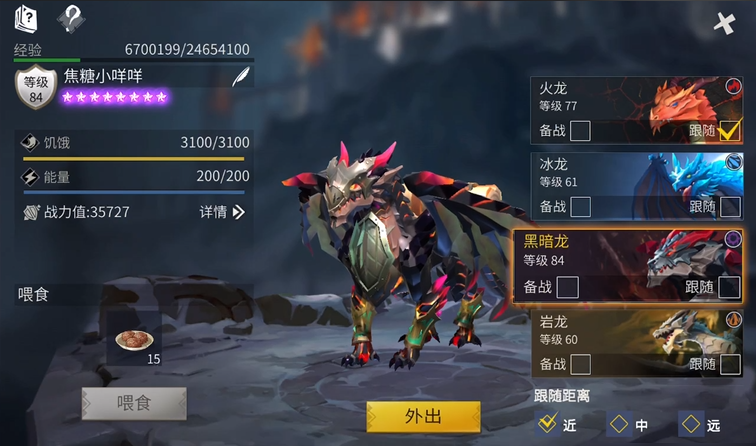 龙是否需要喂食取决于其成长阶段和战斗需求。当龙的饥饿值为0时,它会自动飞走去觅食,无法参与战斗。喂食操作需点击右下角的龙按钮,在弹出页面中选择左侧喂食选项,添加食物后即可完成。前期龙尚未具备战斗能力时,可暂不喂食,让其自行觅食以节省资源;中后期龙成为重要战力后,则需定期投喂以保证其持续作战能力。