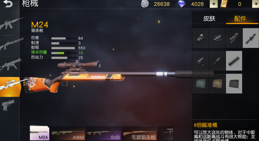 狙击枪方面,除了AWM,Kar98k和M24也是不错的选择。Kar98k作为经典狙击枪,威力和射程表现优秀,适合中远距离点射。M24则能通过配件提升性能,扩容弹夹和消音器的搭配能大幅增强隐蔽性。需狙击枪对玩家的瞄准和预判能力要求较高,建议在开阔地形或制高点使用。