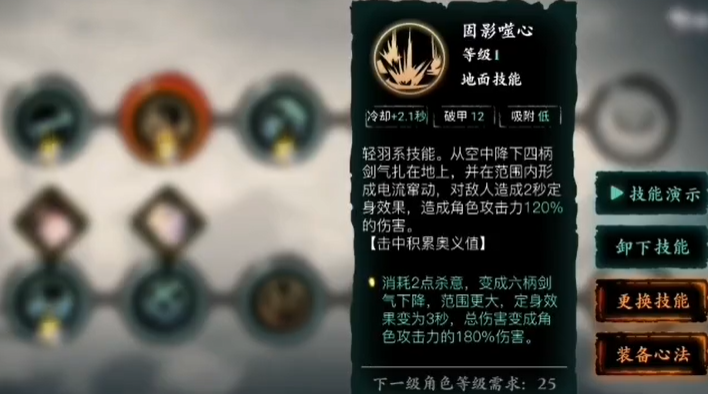 控制链构建需结合固影噬心与月光斩的群控效果。固影噬心可无视霸体定身敌人,覆盖万剑强袭的伤害范围时能最大化输出效率。月光斩作为辅助技能,兼具群伤与奥义值积累功能,适合穿插在技能链中填补真空期。主副心法推荐携带永夜无边(沉默控场)和冷却缩减类心法,确保控制链循环无缝衔接。实战中需注意技能释放顺序,优先破甲后接爆发,避免因护甲未破导致伤害衰减。