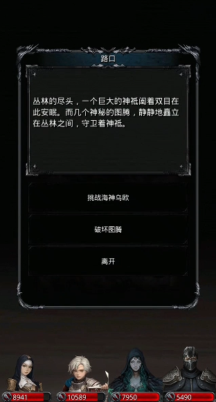 进岛后别慌,先遇到两波蓝皮小怪,技能是单体和群体物理攻击,全员堆80护甲就能轻松搞定。虽然技能说明写着不吃眩晕,但实际能晕。清完小怪会出现选项:直接打海神(普通难度)或者破坏图腾激怒BOSS(困难难度)。新手建议先打普通,拿了圣者长袍再挑战更高难度。