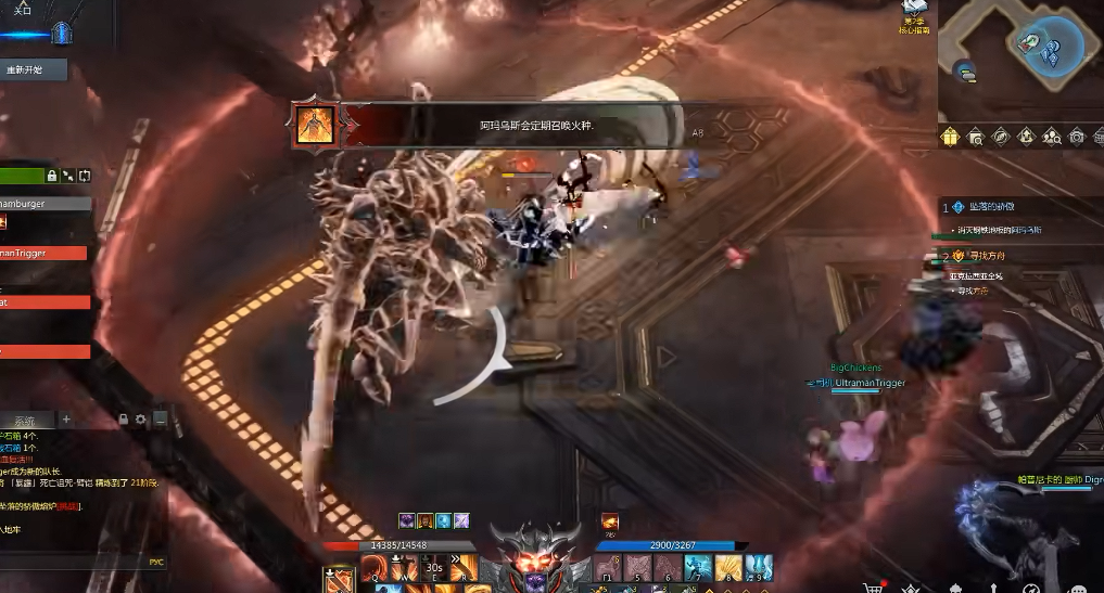 第一关的阿莫乌斯有两个关键机制要注意。火种机制会随机选中队友,3秒后爆炸并击倒周围人,被点名的队友得赶紧跑到地图边缘,别连累大家。另一个是恶龙召唤,BOSS血量到8条和4条时会召唤两只恶龙,如果不尽快解决,BOSS会进入极端状态,防御和移速大幅提升,所以咱们得留好觉醒技能,恶龙一出来就集火秒掉。
