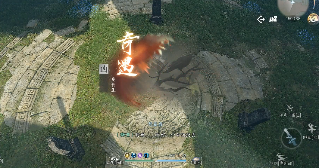 觅长生奇遇任务触发地点在三清山。直接跑到坐标1051,846的位置,找个悬崖勇敢跳下去就能触发任务啦。跳崖后会自动进入剧情动画,等动画结束就会发现身处一个神秘洞窟,眼前立着几块石碑。这时候别急着乱跑,靠近石碑互动就能开启后续剧情。