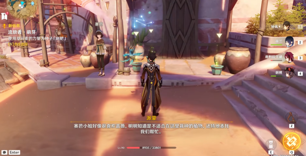 任务过程中需要注意几个细节:使用草元素攻击种子和蔷薇时必须确保角色具备草元素技能;清除死域时要准备好应对敌人;水元素和草元素的交替使用是任务的核心机制。每天的任务完成后务必再次与对应NPC对话以触发后续剧情,这是任务链延续的关键。若中途遗漏某天任务,可能需要重新开始整个流程。
