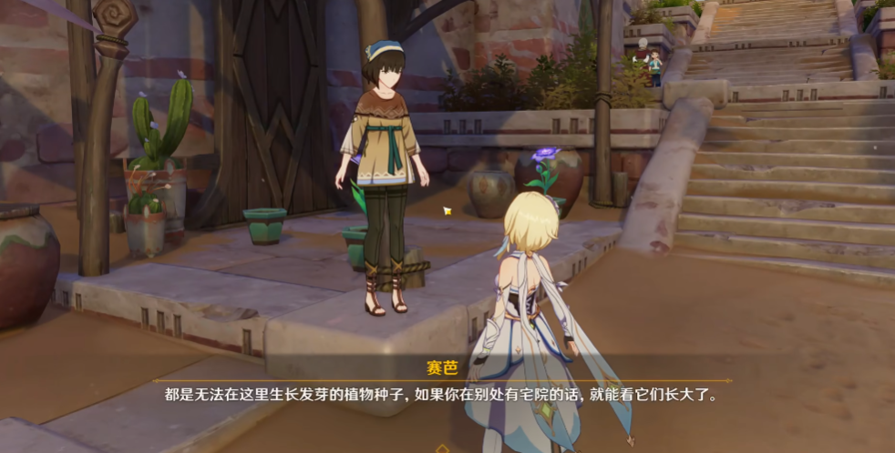 任务的关键在于每天按照顺序完成特定步骤,且必须连续六天进行。第一天和第二天主要在塞芭处完成施肥任务,第二天还需额外前往阿如村北部与阿凡互动并清除死域。第三天开始任务重心转向阿凡,需要用水元素处理石头花,并在后续几天中逐步推进剧情。第五天需要同时与阿凡和塞芭互动,这是任务的重要转折点。第六天最终用草元素激活金蔷薇后,成就即可解锁。
