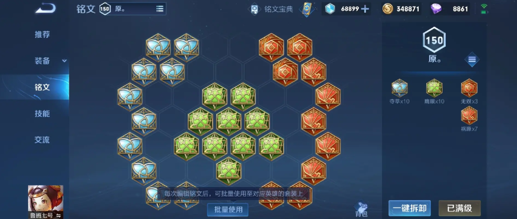 红色选择祸源和无双的组合,搭配绿色鹰眼增加物理穿透,蓝色用夺萃和狩猎混合,这样既有吸血又有移速加成。开局别忘了先点一技能,这个手雷不仅是清线利器,还能标记目标强化后续普攻。对线时多用技能接被动扫射消耗对手,注意保持安全距离。