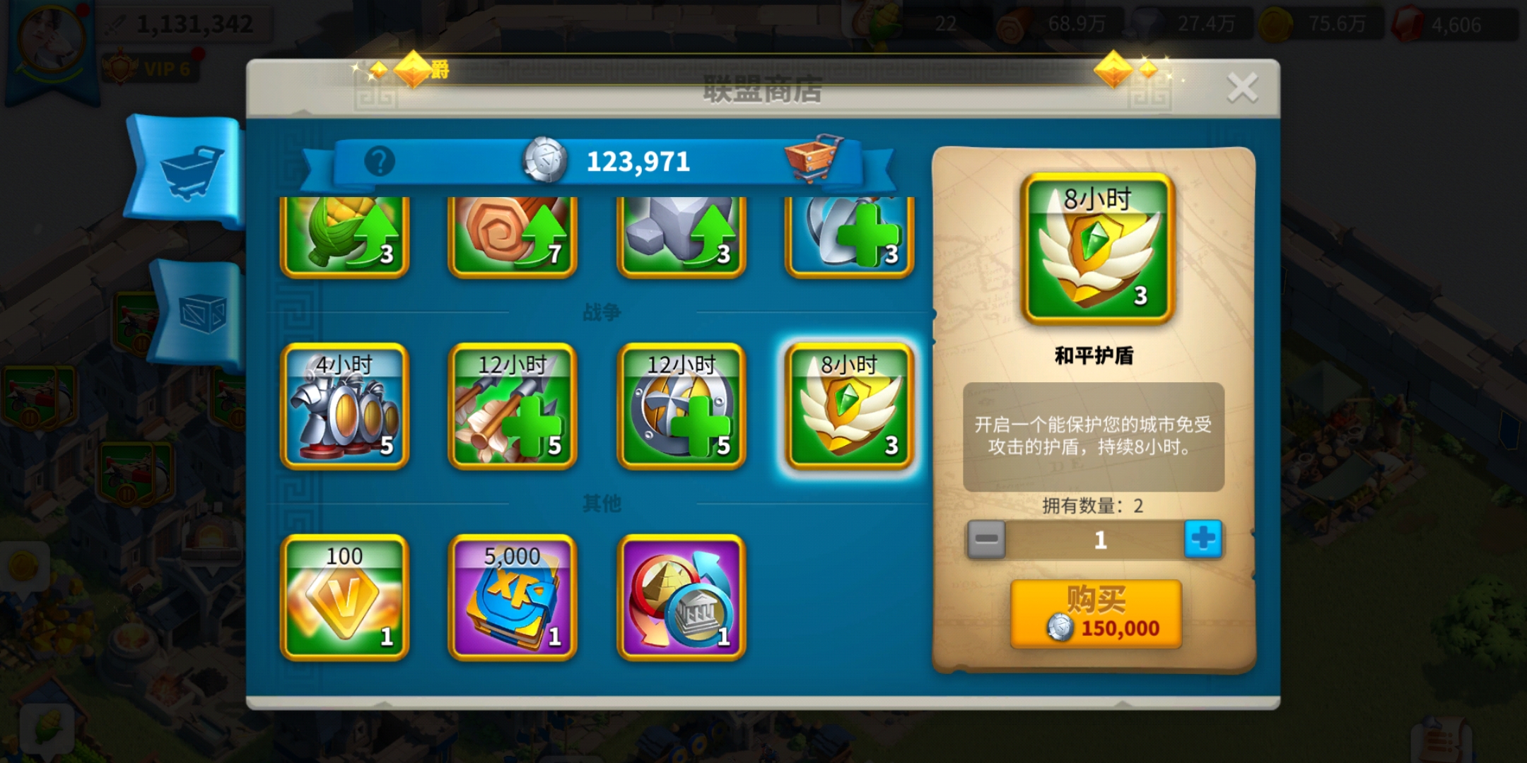 和平护盾是保护城市免受其他玩家攻击的核心防御机制。开启护盾后,城市将进入免战状态,有效避免资源被掠夺或建筑被破坏。护盾的获取方式主要有三种:新手期系统自动赠送、通过游戏内商店购买、使用联盟积分兑换。
