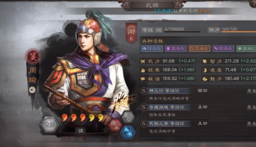 加点策略上,周瑜必须实施全智力加点,以最大化属性收益。智力属性直接影响神火计的灼烧伤害基数与发动率,同时增强夺魂挟魄或风助火势等战法的效果,形成战法与兵书的协同循环。若智力加点不足,周瑜的输出效率会显著下降,削弱其核心作用。玩家应避免分配点数至速度或统率,除非阵容有特殊需求。
