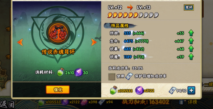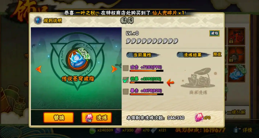 属性选择是洗练的核心技巧,需结合角色定位:输出型忍者优先洗攻击和暴击属性,因其对战力加成最高;坦克型角色则侧重生命和防御属性。洗练时,建议先随机重置直到刷出紫色或橙色属性再锁定,以节省洗练石。饰品属性战力加成排序一般为暴击、生命、攻击、抗暴、防御,玩家应据此调整策略,避免盲目追求战力数字而忽略实际战斗需求。