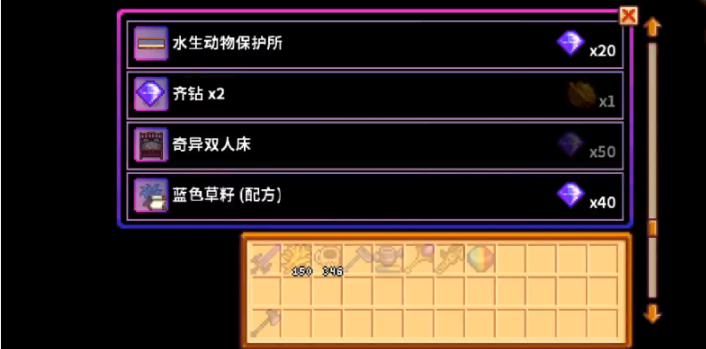 齐钻商店中还存在其他具有独特功能的物品,可结合玩家的具体游戏进度和兴趣进行选择。加料器能够自动为前方的加工机器添加原料,实现生产线的半自动化。齐氏调味料则能永久提升食用食物的品质。对于追求装饰与收集的玩家,水生动物保护所、奇异双人床等家具,以及重型树液采集器等特殊配方也提供了多样化的选择。