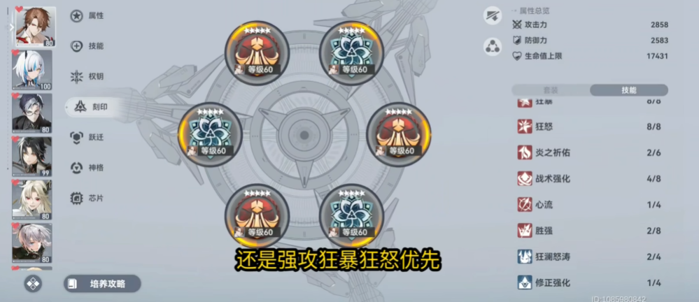 技能升级的优先级需要明确,主要资源应投入到二技能和三技能的提升上,多余的技能点可以分配给奥义技能。提尔的奥义尽管充能效率较慢,但在关键时刻的团队增益和伤害补充仍然非常有用。在输出手法上,要注重印记的循环,记住除了满棋子且空印记的特殊情况,其他时候都应尽量在普攻中衔接一技能来切换棋子,因为普攻接一技能的冷却时间更短,这能有效解决技能衔接不畅、感觉总是在平A的问题。
