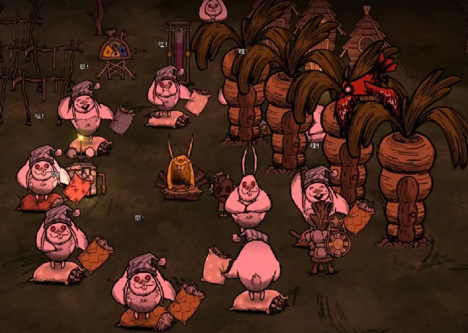 有个小技巧可以自动刷蜘蛛丝,那就是利用兔人。兔人和蜘蛛是死对头,看到蜘蛛就会主动攻击。咱们可以把蜘蛛巢种在兔人房旁边,用围墙围起来留个小口子,这样蜘蛛一出来就会被兔人干掉,咱们只要捡现成的蜘蛛丝就行。记得身上别带肉,兔人讨厌肉味,不然连咱们也会被攻击。这个方法特别适合长期稳定获取蜘蛛丝,不用天天跑出去找蜘蛛巢。