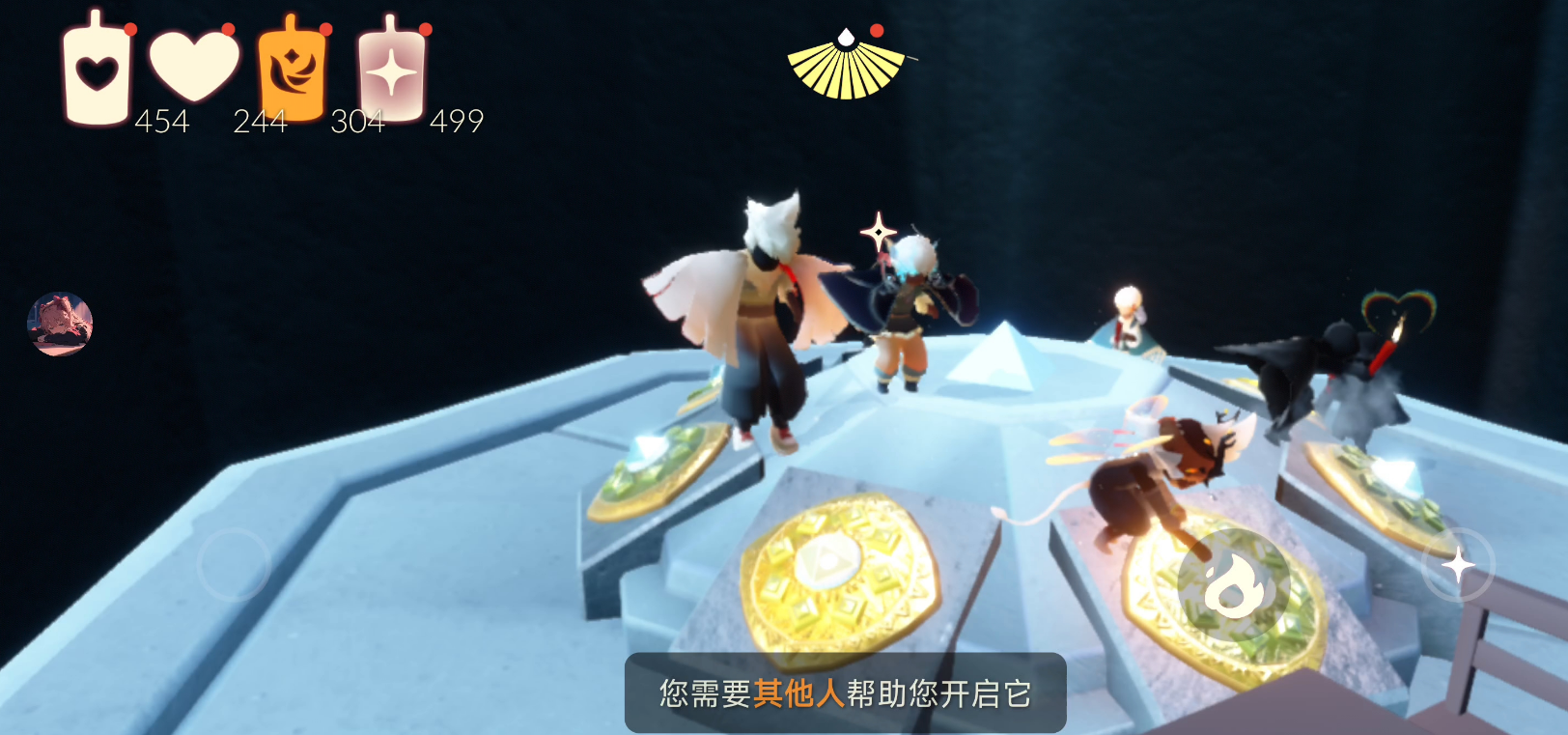 如果遇到门没反应的情况,可能是网络延迟,稍微等几秒再试试。密室周围偶尔会有隐藏的光之翼,顺手收集一下也不错哦。进入密室后,里面通常会有一些简单的解谜元素。比如需要按顺序触碰石碑,或者跟着光点指引走。