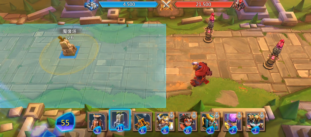 最终阶段需警惕敌方首领的出现,提前在路径上布置熔岩塔并保留火箭技能。步兵单位对英雄有克制效果,可适量补充以应对人海战术。整场战斗需保持耐心,分阶段推进,避免资源过早耗尽。通关后获得的卡牌和徽章可用于后续章节的强化,建议优先升级步兵、弓兵和骑兵相关属性。