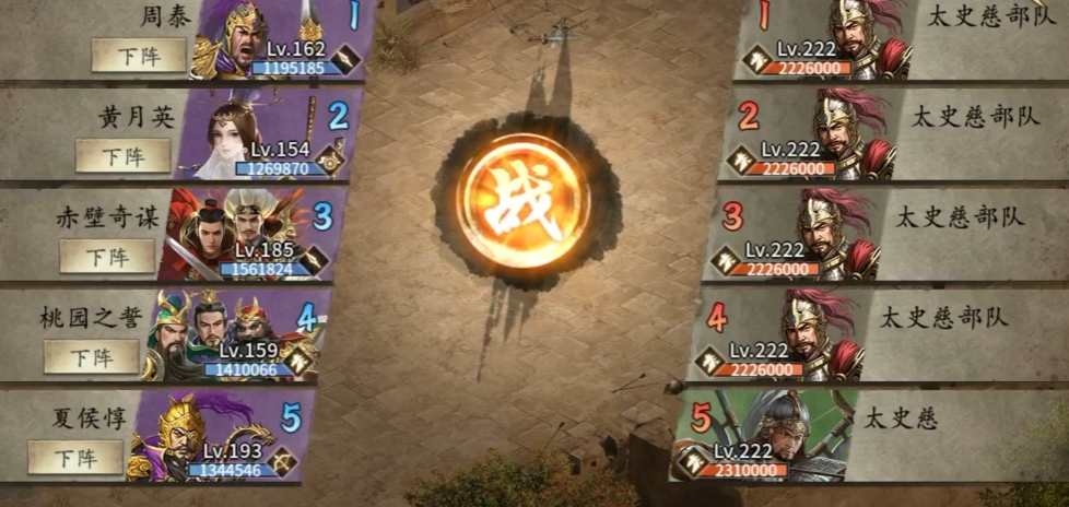 攻城掠地222副本低配通关的核心在于合理排将和战法分配。推荐使用曹操、觉醒月英、周泰、关羽、孙权这套阵容,其中曹操不带副将首发,二车觉醒月英带曹仁副将并在最后一排放战法,三车周泰需配备固若金汤技能,关羽负责觉醒战法输出,喷火孙权收尾。这套配置的关键在于利用曹操和月英消耗前两到三个敌方武将,周泰实现一换一,最后由关羽和孙权完成收割。需虽然司马懿能反弹两次战法,但由于缺乏平砍能力,实际效果不如关羽稳定。