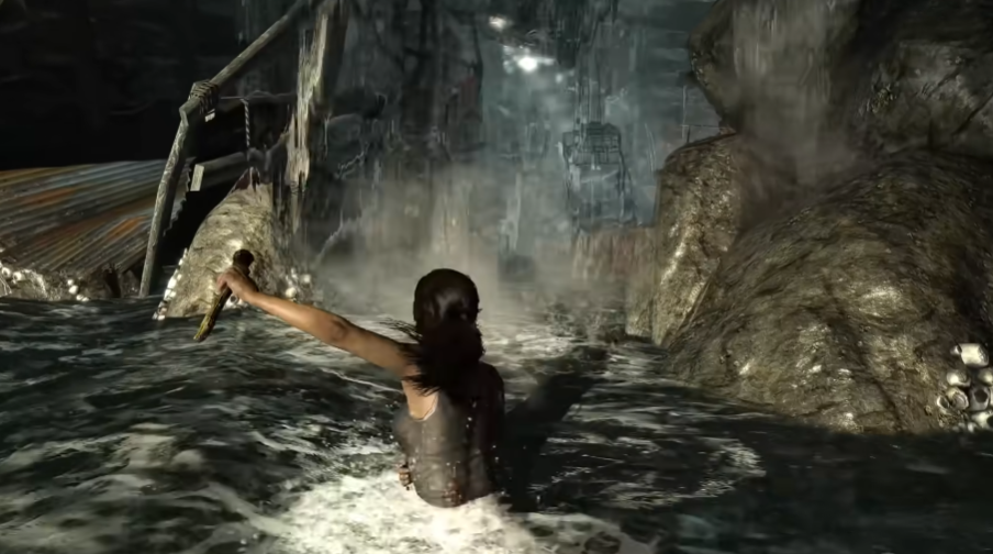 脱离初始险境后,玩家需利用生存本能(默认Q键)高亮可交互物体,例如水闸旁被木棒固定的机关。燃烧木棒触发水闸下落可阻拦流动的货物,再点燃货物制造爆炸开路。此处涉及连续的环境解谜:观察场景结构、判断物品关联性、按正确时序操作机关。过程中需注意动态变化,例如铁箱上方间歇性滴水会熄灭火焰,需把握点火时机。