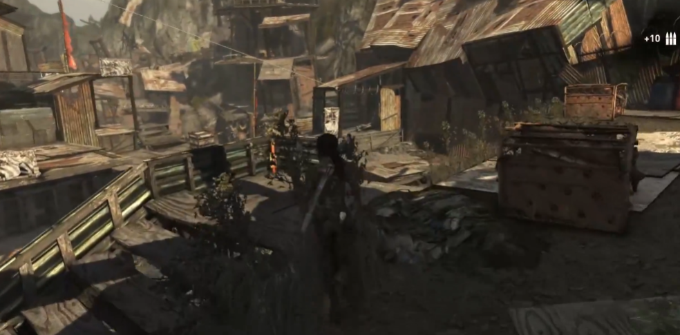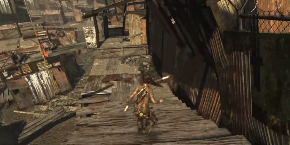 关键在于利用环境优势和战术策略。刚到贫民窟时,你会处于虚弱状态,任何动作都会消耗体力,所以尽量保持隐蔽。先钻进水道来到另一边,用弓箭暗杀掉院外的敌人,进入营地大门后沿着山道下行一路杀敌。抵达直升机尾部时,用绳箭拉开后舱门进入机舱寻找医疗箱。虽然医疗箱里没有药物,但搜索驾驶员尸体会得到打火机,烧红箭头给伤口消炎并解锁火箭。警报响起,敌人会蜂拥而至,建议寻找有利位置用火箭消灭进攻的敌人,受伤就躲回角落恢复生命。