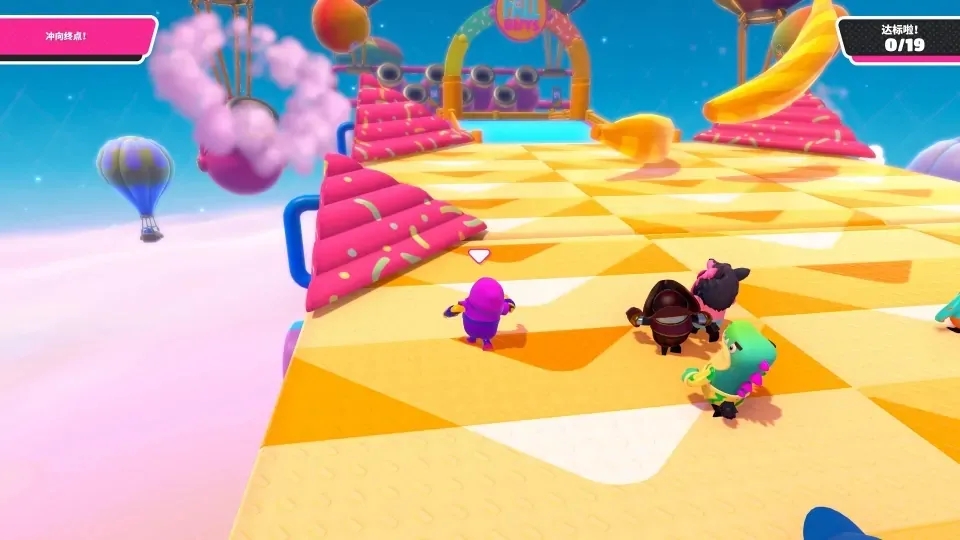 成功拾取后,震荡球会立即进入倒计时并开始膨胀闪烁,即将爆炸,需快速决策处理方式。手持球体时可自由移动与跳跃,便于贴近对手或调整站位,但必须时刻注意爆炸范围,避免在自身仍处于爆炸圈内时被淘汰。投掷是核心应用,按住抓取键可进入蓄力状态,角色头顶会显示力度条,松开按键后球体将沿抛物线飞出。低角度投掷适合近距离击倒目标,高角度可跨越障碍远程攻击,垂直向上投掷则能制造范围伤害,适合被多名对手包围时反制。投掷动作存在轻微硬直,建议在确保周围无即时威胁时释放,瞄准对手行进路线或脚下往往能提升命中率。